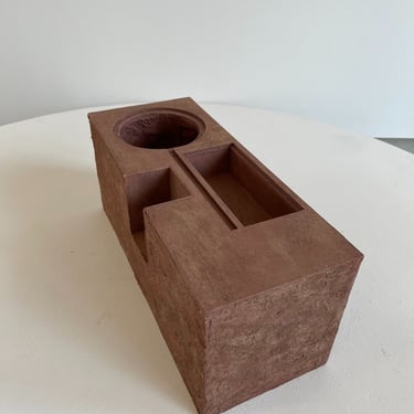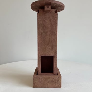 Pour ce projet, j’ai choisi le grès rose des Vosges, en travaillant depuis la Meuse, pour ancrer l’objet dans son territoire. Ce choix n’est pas anodin : il s’agit d’une matière pérenne, capable de traverser les siècles, comme l’objet lui-même, pensé pour être universel et intemporel.